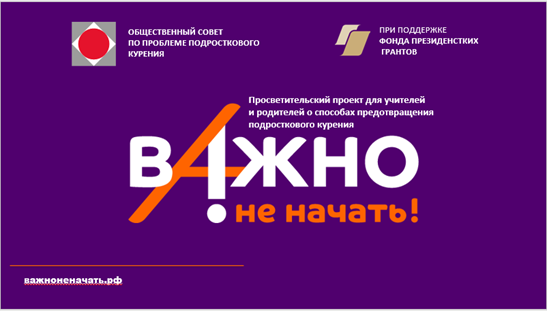 В этом учебном году в нашей школе пройдут занятия «Курс на здоровье». Они являются частью большого федерального просветительского проекта для учителей и родителей о способах предотвращения подросткового курения «Важно не начать!».